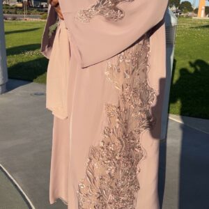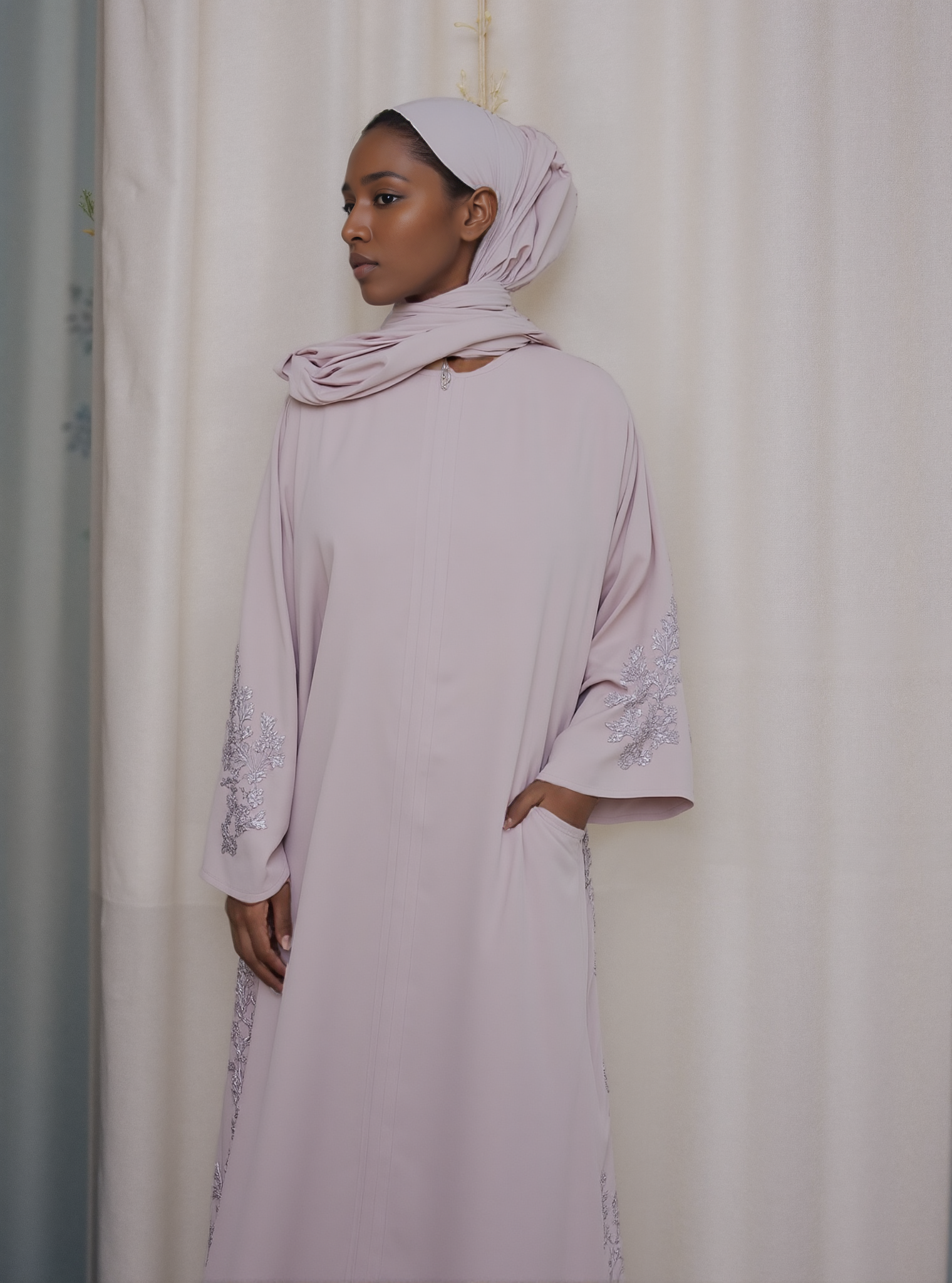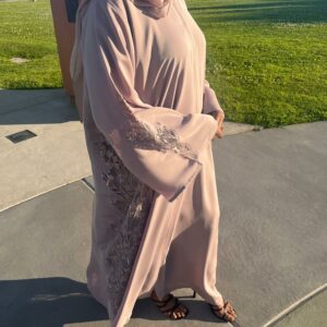 This Chic Nada Detailed Abaya blends modern elegance with timeless charm, featuring delicate lace accents that add a touch of sophistication to its flowing, graceful silhouette.