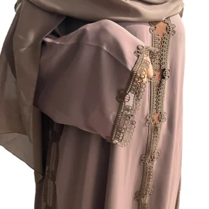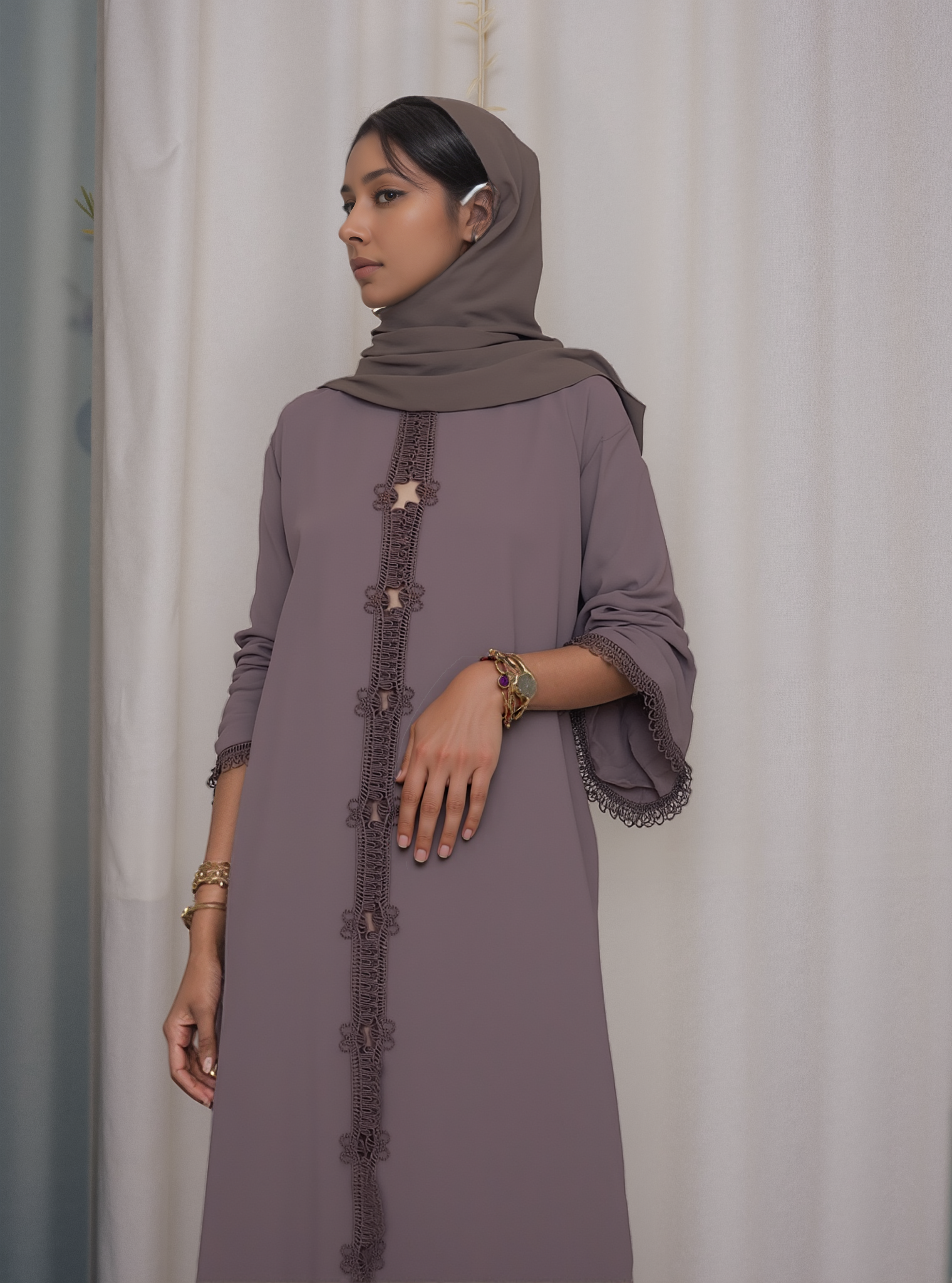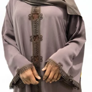 The Chic Lace Detailed Abaya blends modern elegance with timeless charm, featuring delicate lace accents that add a touch of sophistication to its flowing, graceful silhouette.