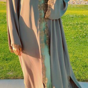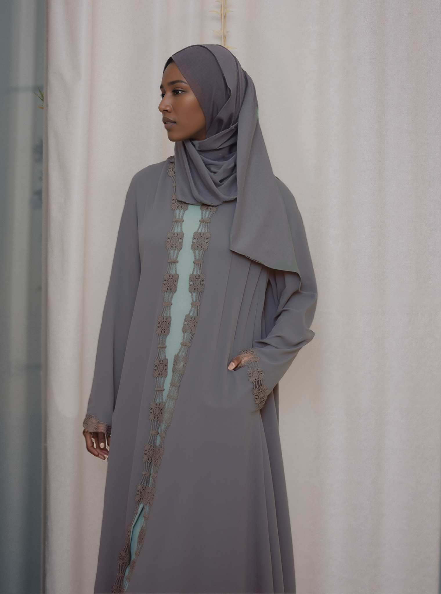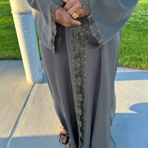 This Chic Lace Detailed Abaya blends modern elegance with timeless charm, featuring delicate lace accents that add a touch of sophistication to its flowing, graceful silhouette.