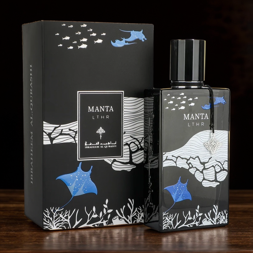 Manta mirrors the allure of manta rays gracefully gliding through the oceans. Bright tropical notes blend with oud wood and berries, resting on a luxurious base of leather, vanilla, and amber, leaving a lasting, indelible trace.