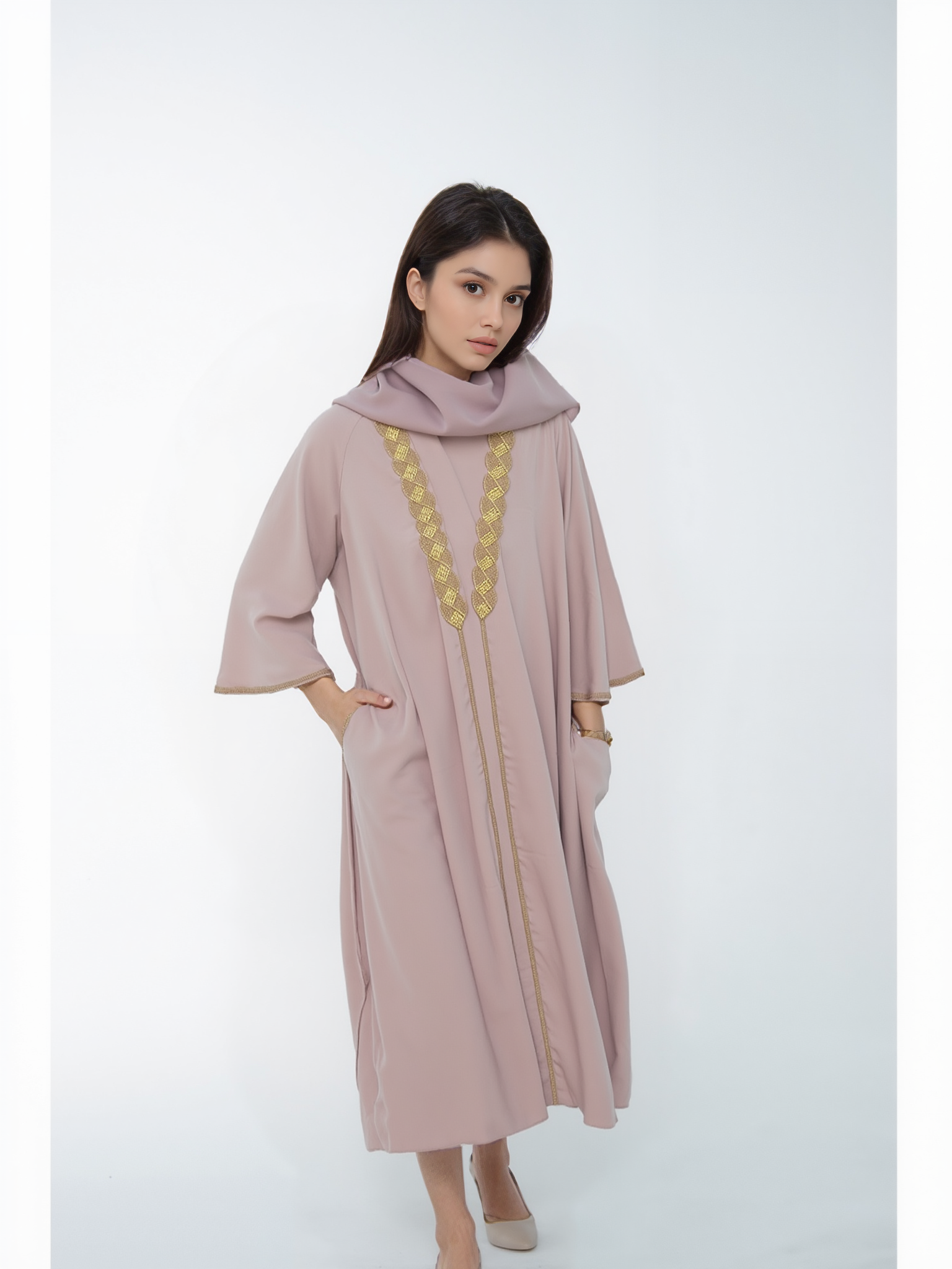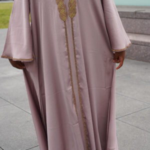 Satin Material with Bell Sleeve design – showcases a refined blend of elegance and nature-inspired beauty, featuring delicate leaf patterns on a classic black backdrop.