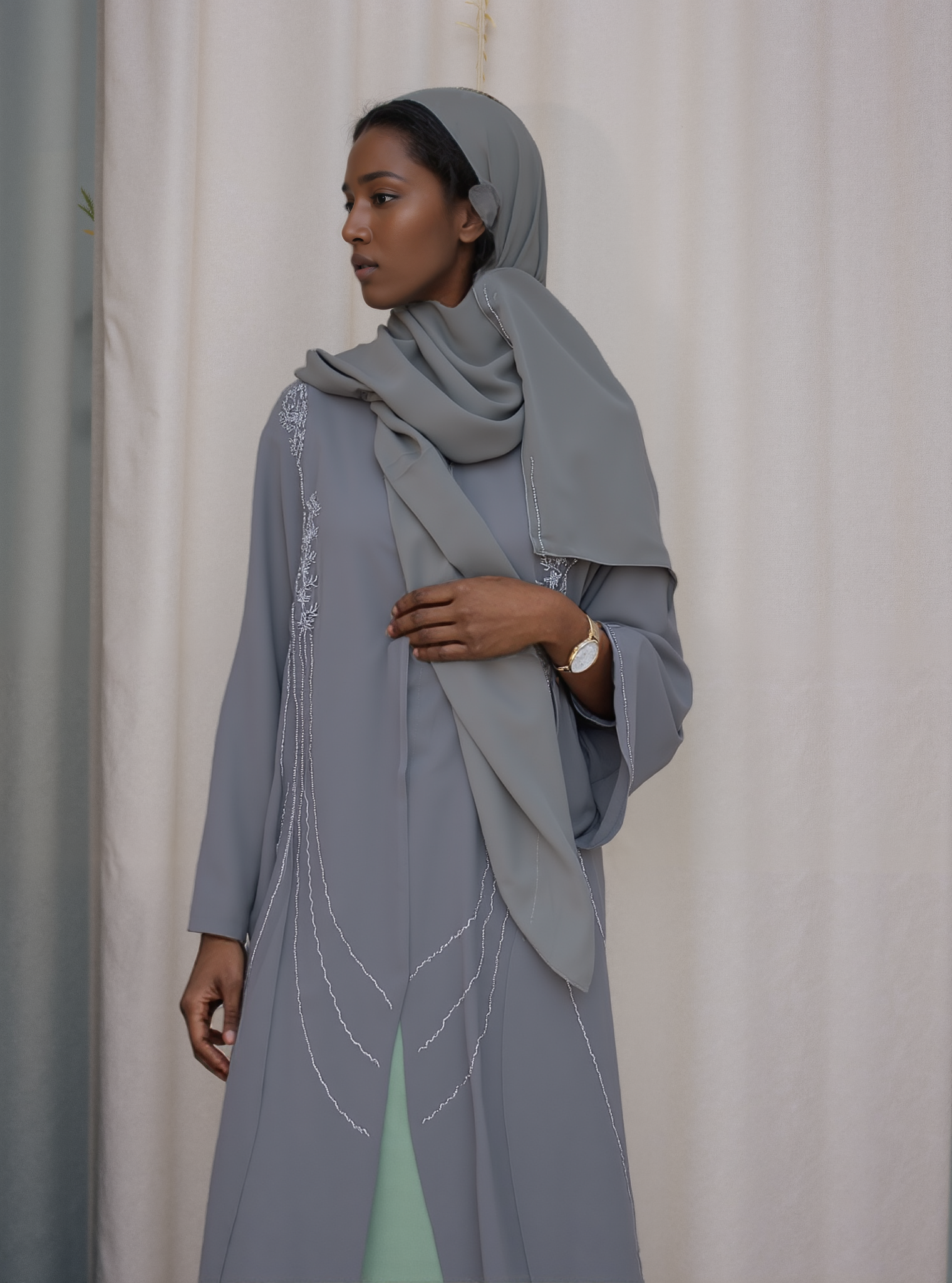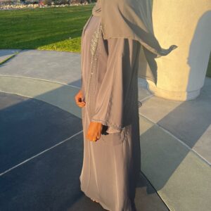 This Chic Lace Detailed Abaya blends modern elegance with timeless charm, featuring delicate lace accents that add a touch of sophistication to its flowing, graceful silhouette.