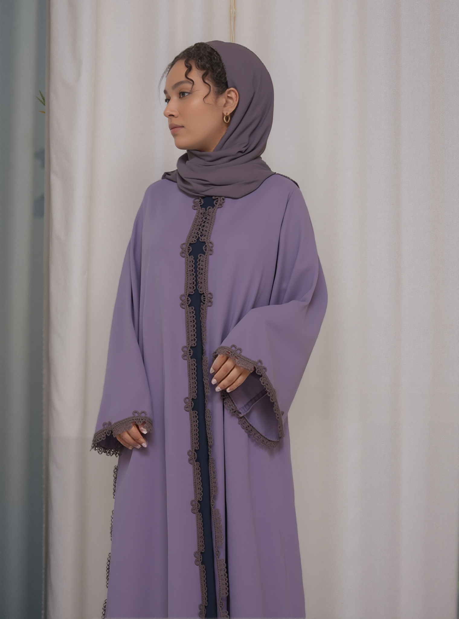 This Chic Lace Detailed Abaya blends modern elegance with timeless charm, featuring delicate lace accents that add a touch of sophistication to its flowing, graceful silhouette.
